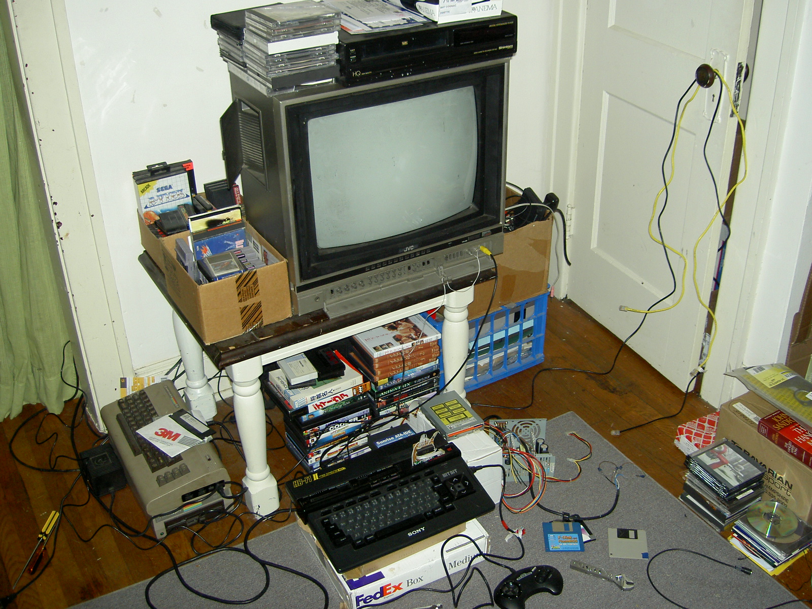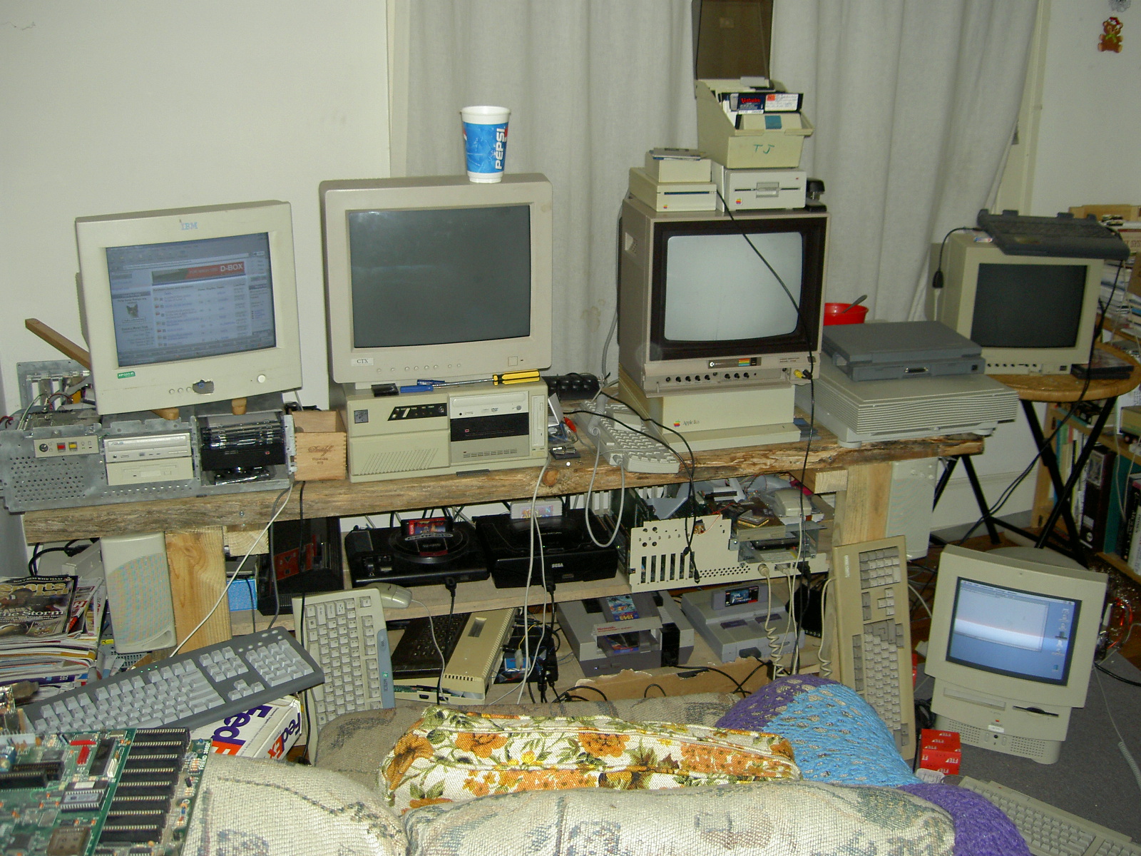 Not pictured: Coleco Adam, TI99/4A, some old laptops, PCs ranging from 8088 to Celeron, boxes and drawers of ISA and VL cards, stacks of hard and floppy drives...